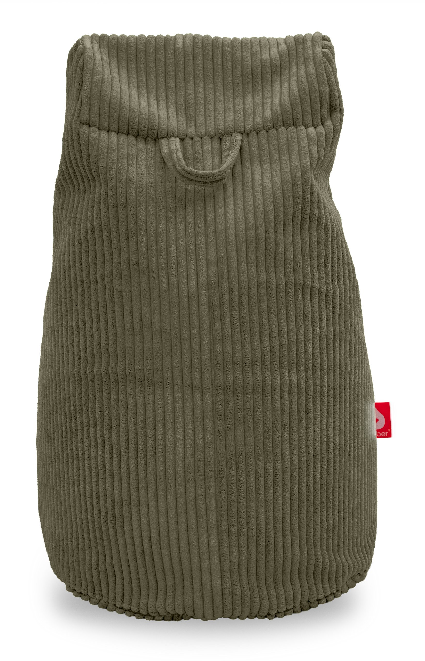 Nice is een comfortabele zitzak stoel in leger groen dik ribfluweel met een praktische twist: aan de zijkant zit een handige pocket waarin je bijvoorbeeld je afstandsbediening, boek, tablet of gamecontroller kwijt kunt. Zo heb je alles binnen handbereik terwijl je relaxed zit.